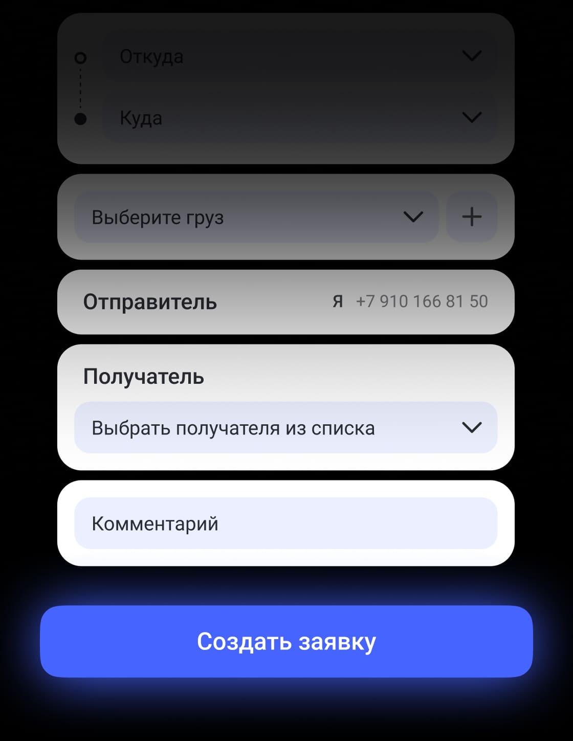 Приложение даёт возможность создавать заявки на вызов техники. При первом заказе основные плитки крупные, чтобы сразу ввести заводских пользователей в курс дела. После знакомства с интерфейсом основной экран занимают заявки, а кнопки заказов спускаются вниз